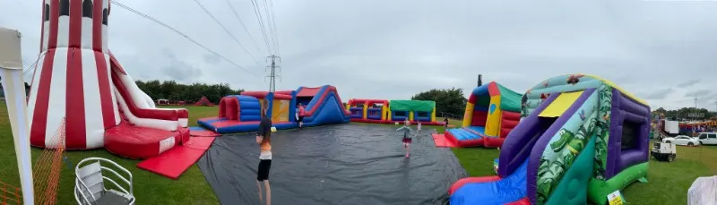 This 51ft x 16ft assault course will be the highlight of any party. Measuring a whopping 51 feet long it has 2 lanes to make racing your mate even more fun. This has a 8ft platform height slide at the end.